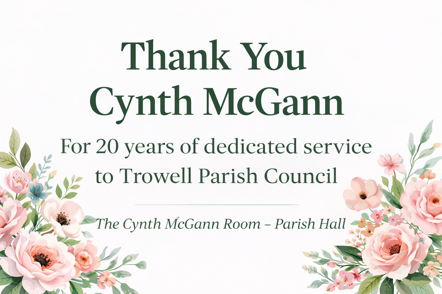 Last night marked the final meeting for Cllr Cynth McGann after an incredible 20 years of dedicated service to Trowell Parish Council.