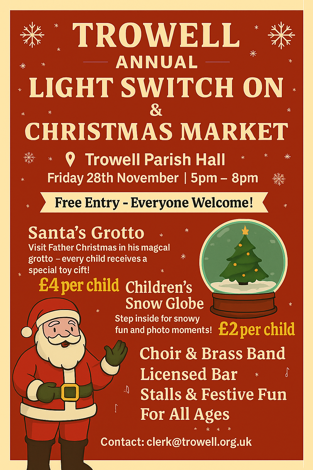 Bring your family, friends, and neighbours along for a truly special evening as we light up Trowell and welcome the festive season together.