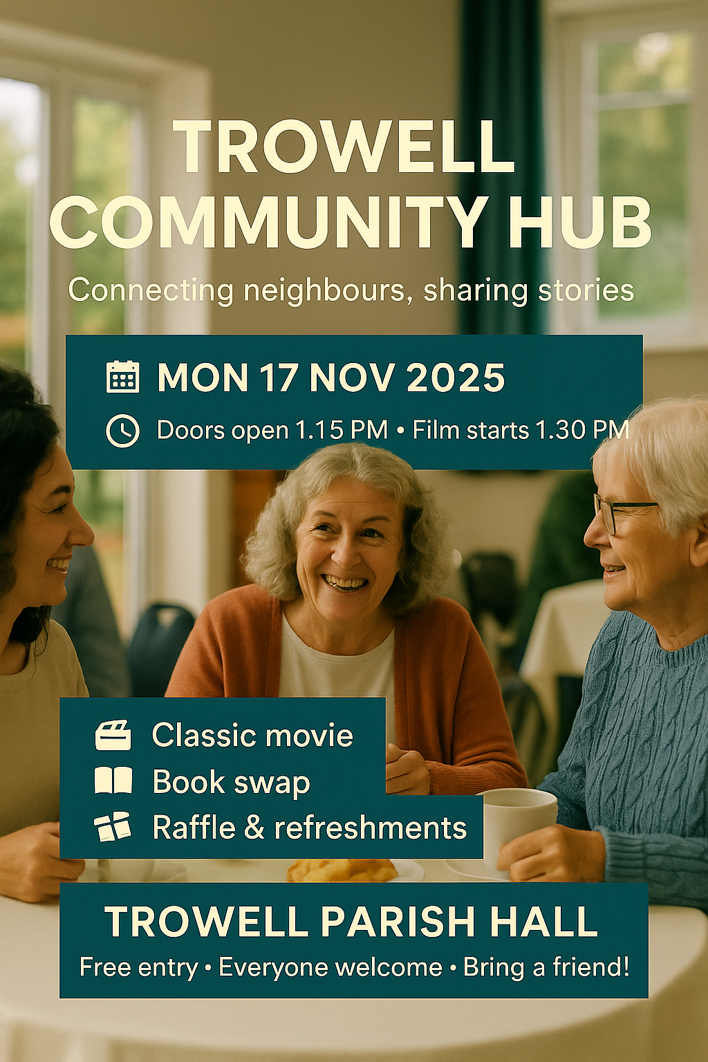 We’re looking forward to welcoming everyone back to the Trowell Community Hub for another relaxed afternoon of good company, conversation, and community spirit!