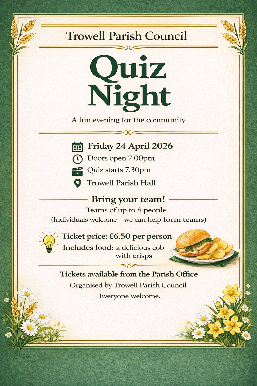 After the fantastic turnout and brilliant feedback from our last event, we’re delighted to be bringing another Quiz Night to Trowell.